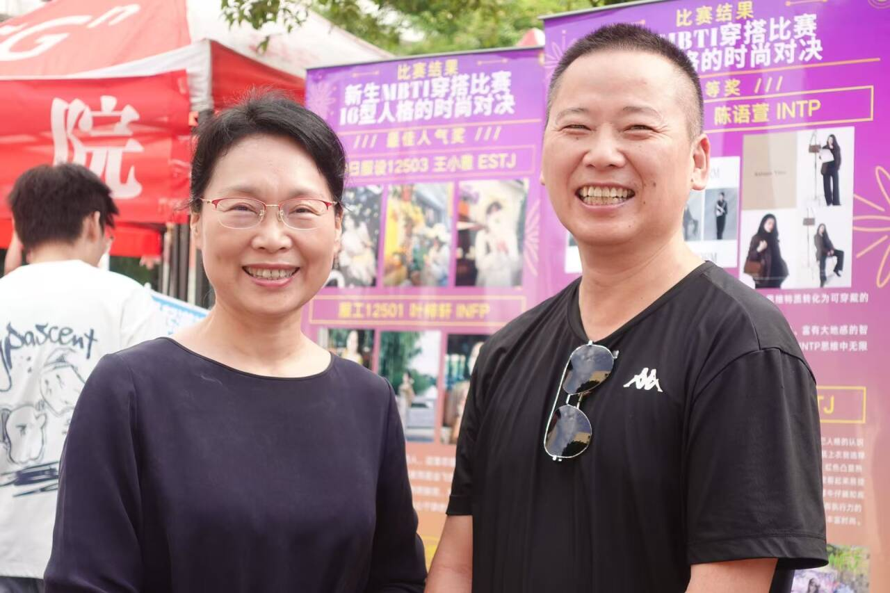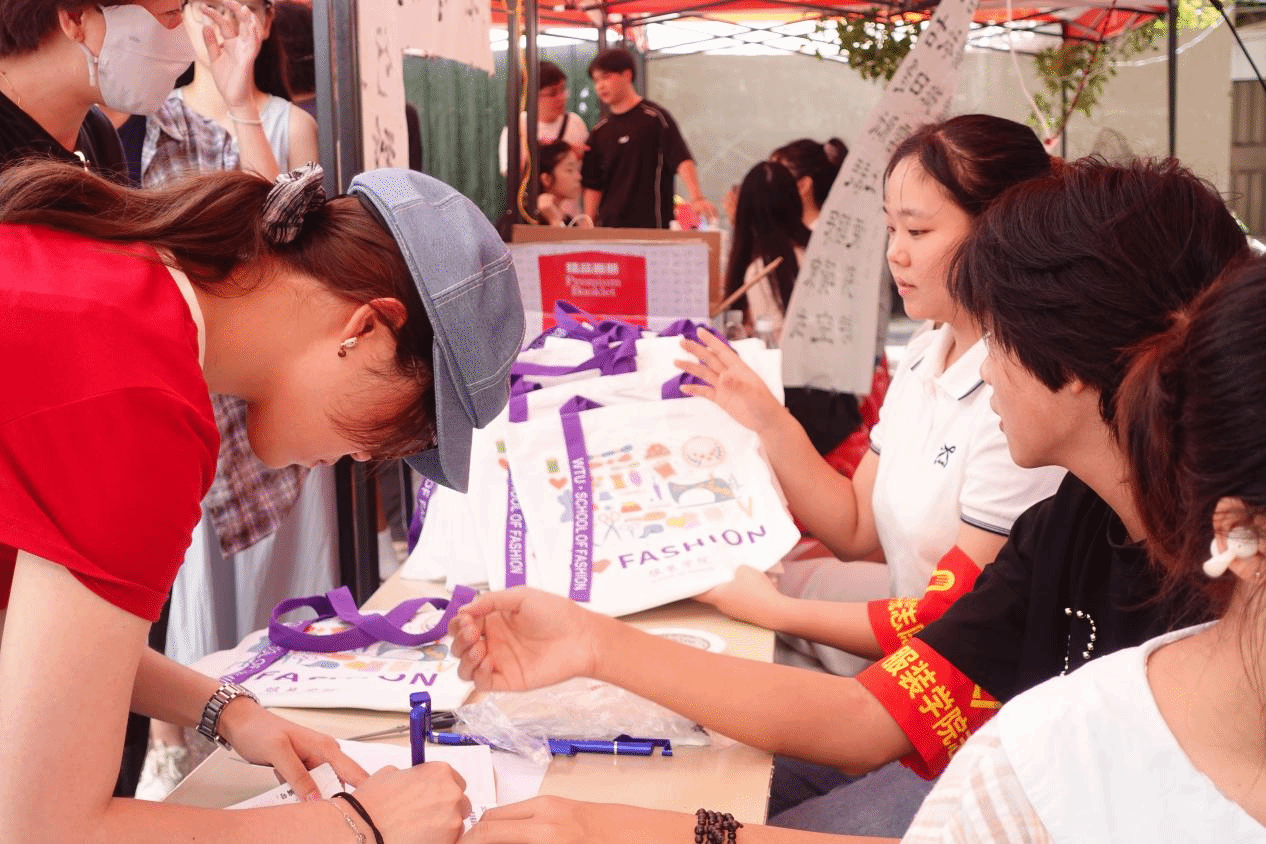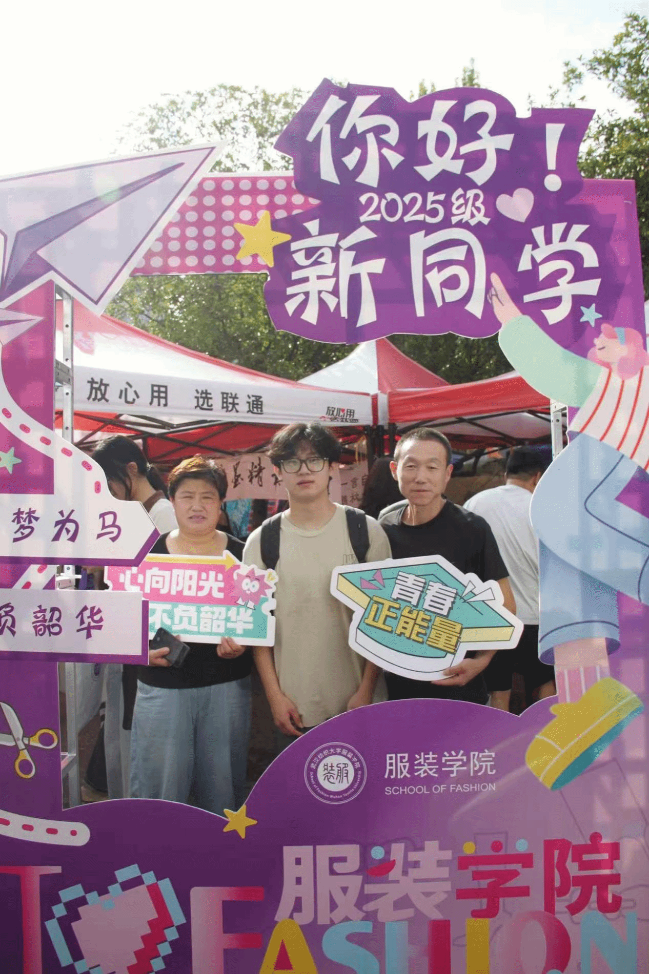 迎新现场更成为一场融专业与创意于一体的教育展示。25届优秀毕业生展板与新生暑期MBTI穿搭比赛作品展板并排陈列,一边彰显榜样力量,一边展现青春创意;优秀毕业设计作品的人台展示,则生动呈现了学院的教学成果与专业高度,吸引了众多新生及家长驻足欣赏。新生打卡墙前欢声笑语不断,成为记录美好瞬间的热门景点,浓郁的艺术氛围与专业特色交织,极大激发了新生对未来学习的期待。