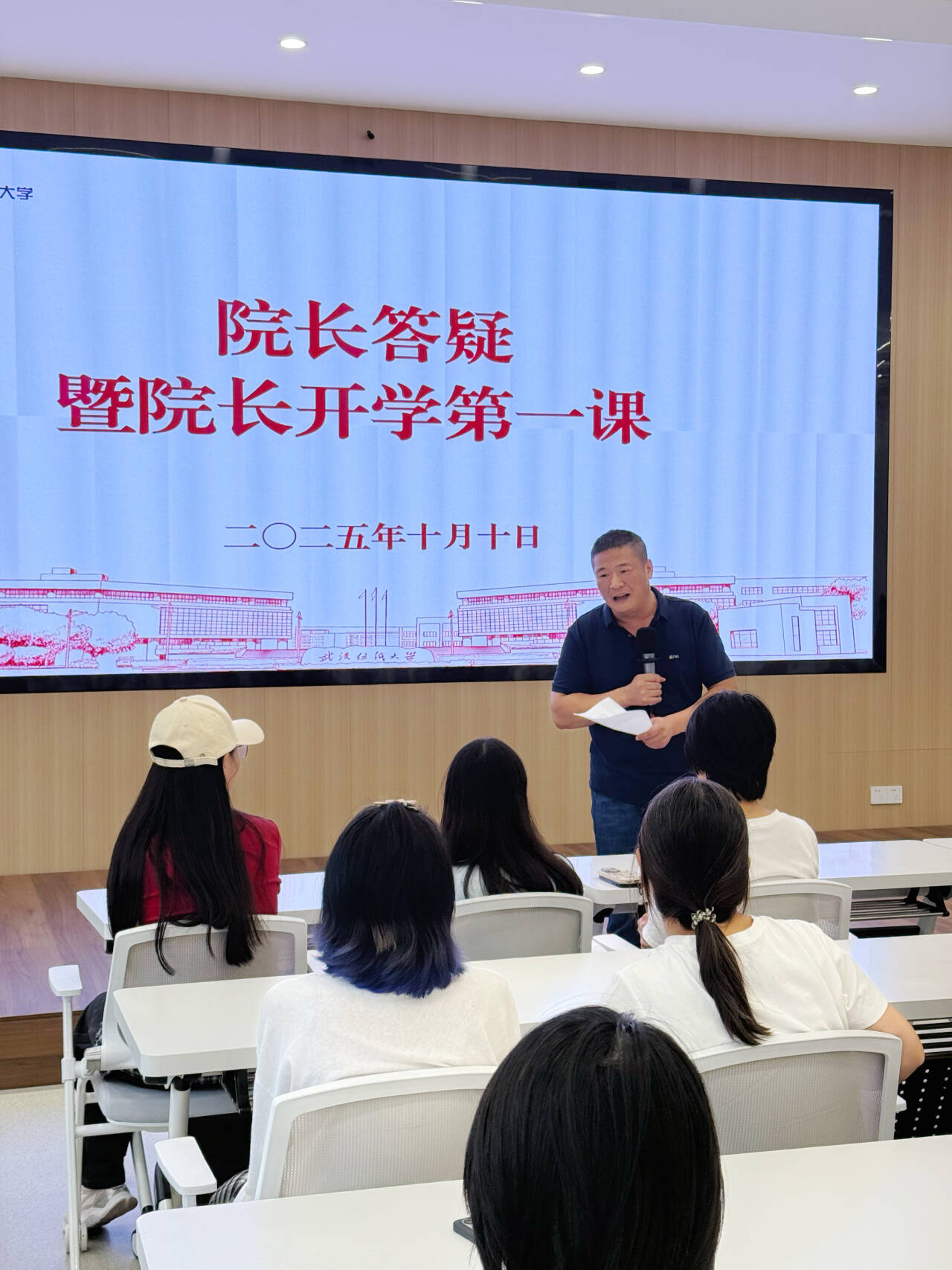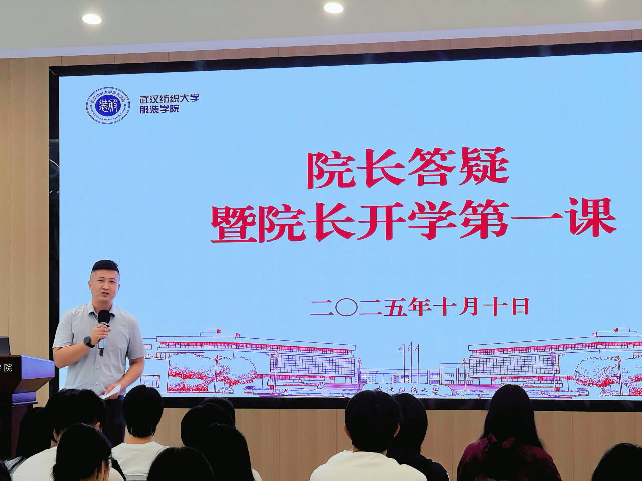 针对新生在科研竞赛方面的困惑,院长陶辉系统梳理了学院搭建的多层次科研训练平台,包括“三大学术论坛”、学科竞赛专班、校企合作基地等,鼓励新生从大开始积极参与,在实践探索中提升创新能力。围绕跨学科融合与数字化发展趋势,重点讲解了“艺术+工程”交叉课程体系建设情况,以及在智能穿戴、可持续时尚等新兴领域的教学改革举措,为学生应对产业变革指明方向。在国际交流方面,就中外合作办学项目的课程设置、师资配备、留学支持等学生关心的问题进行详细说明,展现了学院培养具有国际视野专业人才的坚定决心。