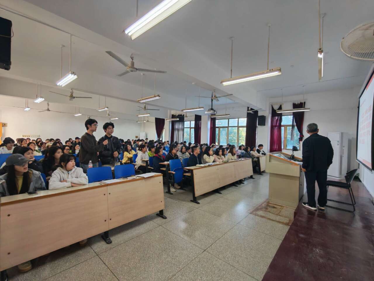 活动现场,百余名学子在杜书记的引领下,齐声诵读《大学》经典段落,声音洪亮激昂,展现了纺大学子对经典的敬畏之心和蓬勃朝气。在思想交流环节,同学们踊跃提问,杜书记就大家关心的问题进行了耐心细致的解答,现场氛围热烈。