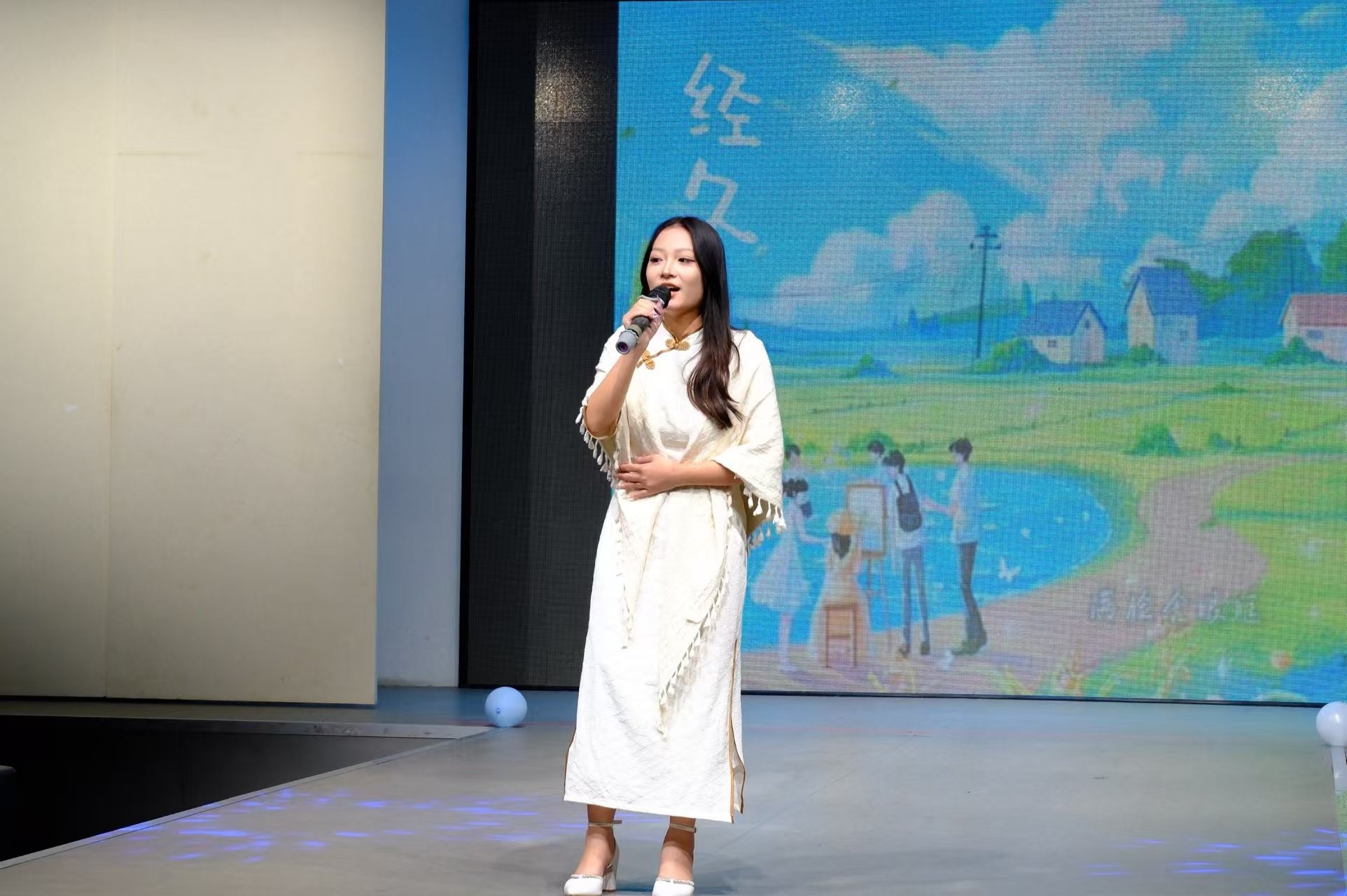 这场属于青春与荣光的盛典,迎来了最为动人的时刻。全场目光汇聚之处,陶院长缓步走向舞台中央,以饱含深情的话语做最后的致辞。致辞的余温仍在表演厅萦绕,悠扬的音乐前奏已然响起。在众人惊喜的注视中,陶院长亲自献唱经典《万水千山总是情》。她温厚深情的嗓音,道尽了一位教育者对莘莘学子跨越“万水千山”的培育之切、赞赏之情与期盼之深。这首歌,更是将今夜的万千情感尽数升华。