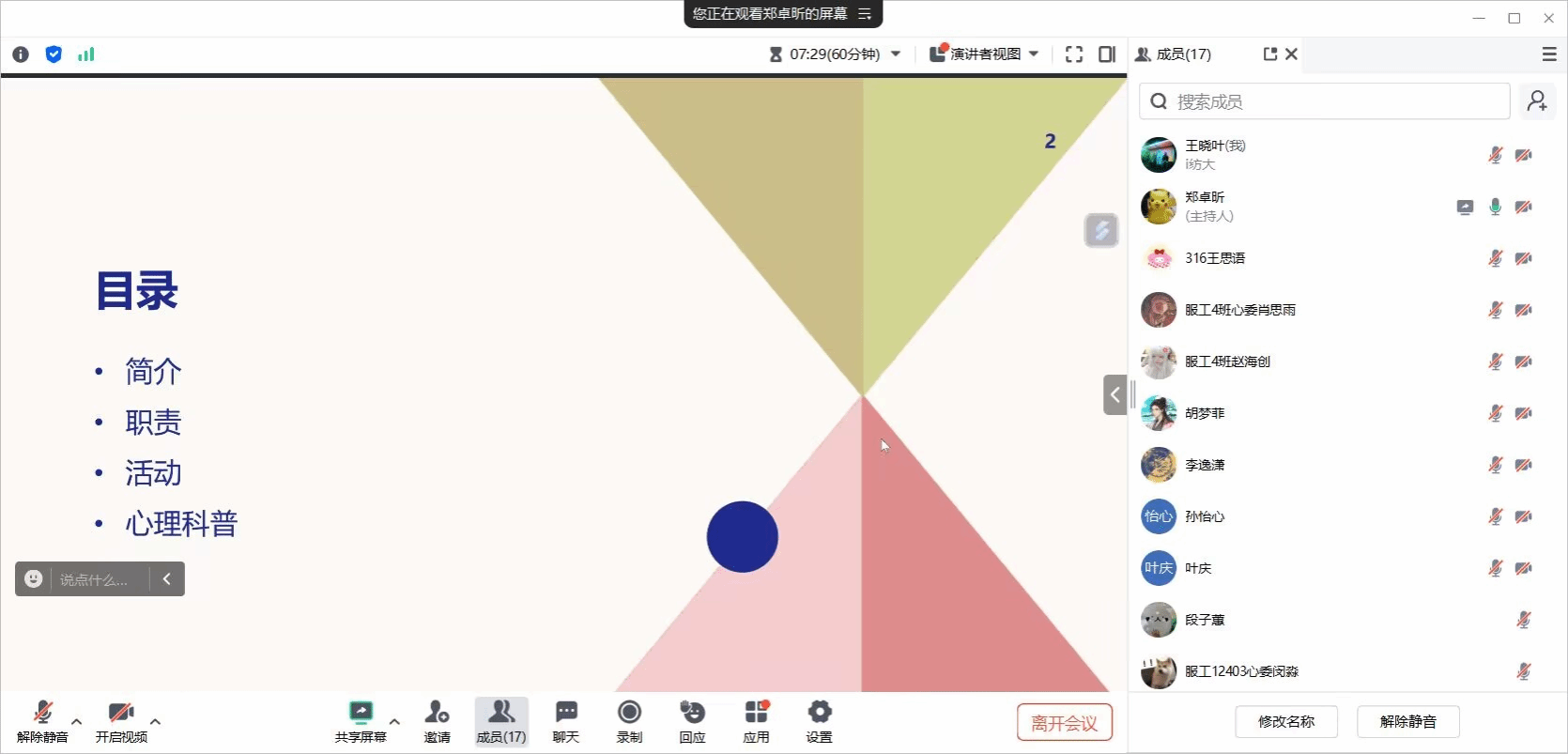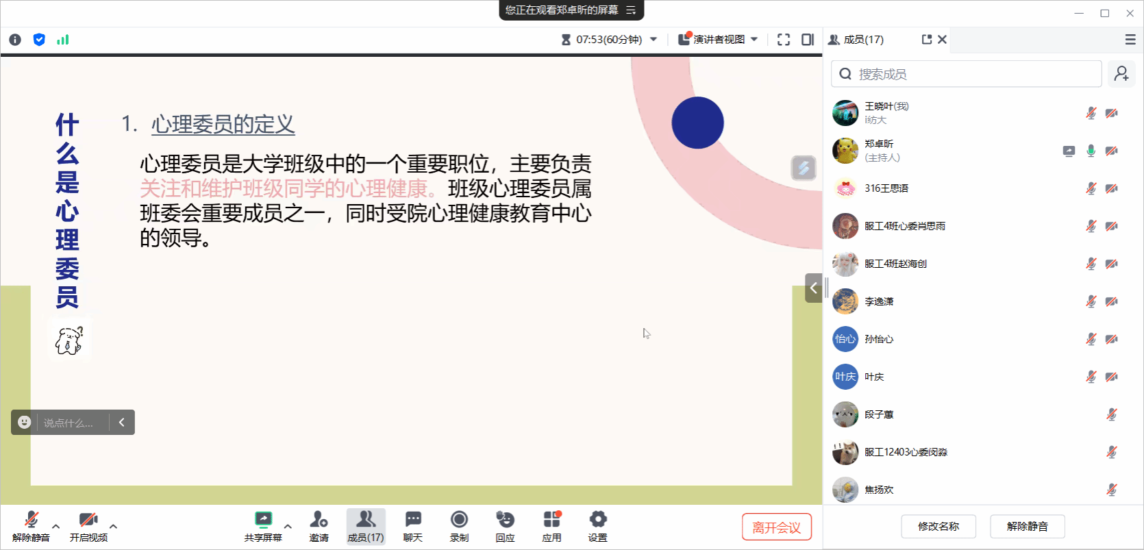 2024年11月7日中午,必赢bwin网址大全心理工作站在线上举办了大学生心理委员新生团辅,心理工作站成员和各班心理委员参加了本次活动。