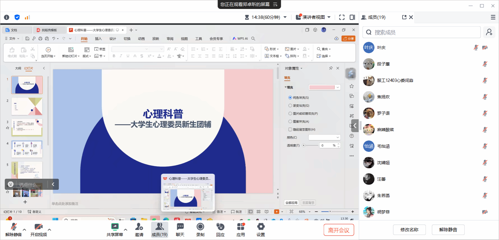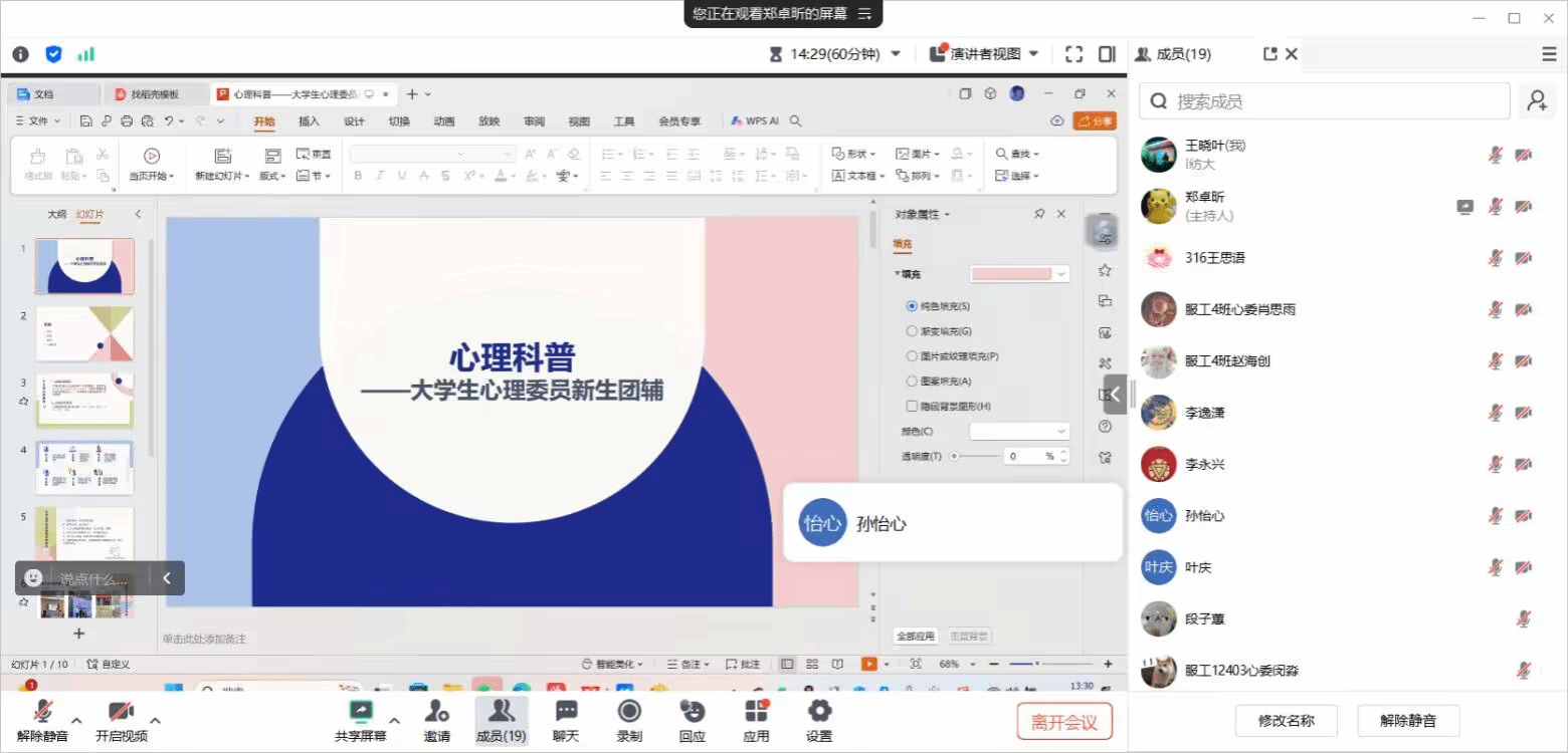 本次会议主要围绕心理委员展开讨论。新生踏入校园之际,往往会被迷茫、焦虑乃至抑郁等不良心理状况所困扰。在此情形下,心理委员的重要性便得以凸显,其肩负着为同学们排忧解难、疏导心理问题以及缓解压力的重任。无论是心理委员,还是依心小屋的成员,都理应积极主动地投入到解决这些心理问题的工作当中,通过温暖关怀,为同学们营造一个健康、和谐、积极向上的心理环境,助力他们顺利度过新生适应期,开启美好的校园生活篇章。