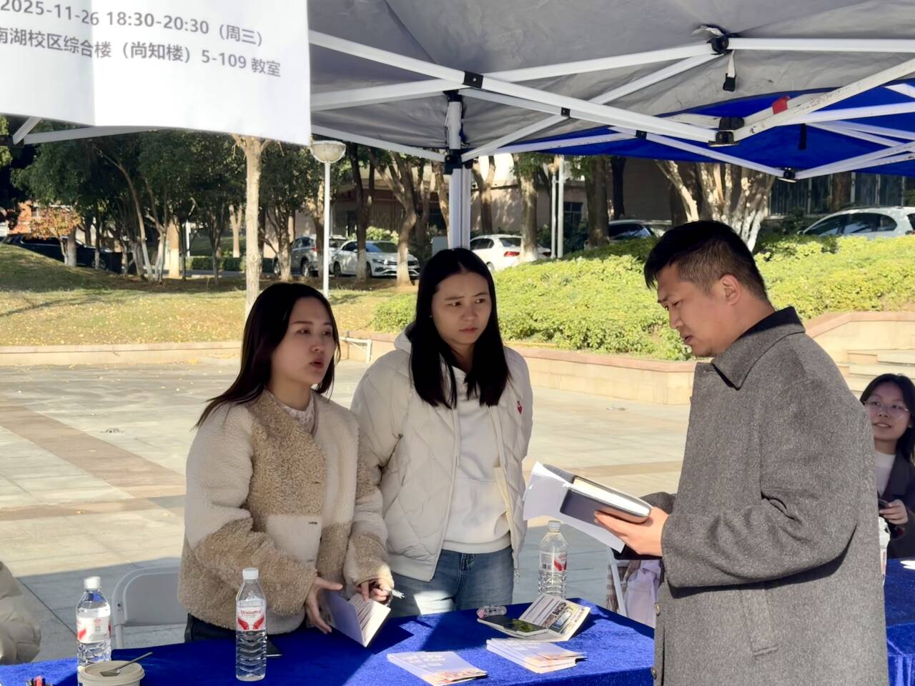 为助力2026届毕业生高质量就业,搭建毕业生与用人单位双向选择平台,11月26日下午,由必赢bwin官方网站学生就业指导处主办、必赢bwin网址大全承办的“2026届毕业生第十场大型招聘会暨南湖校区服装艺术传媒类专场”在南湖校区经纬广场顺利举行。南湖校区各学院副书记、毕业班辅导员、求职的毕业生参加了本次招聘会。