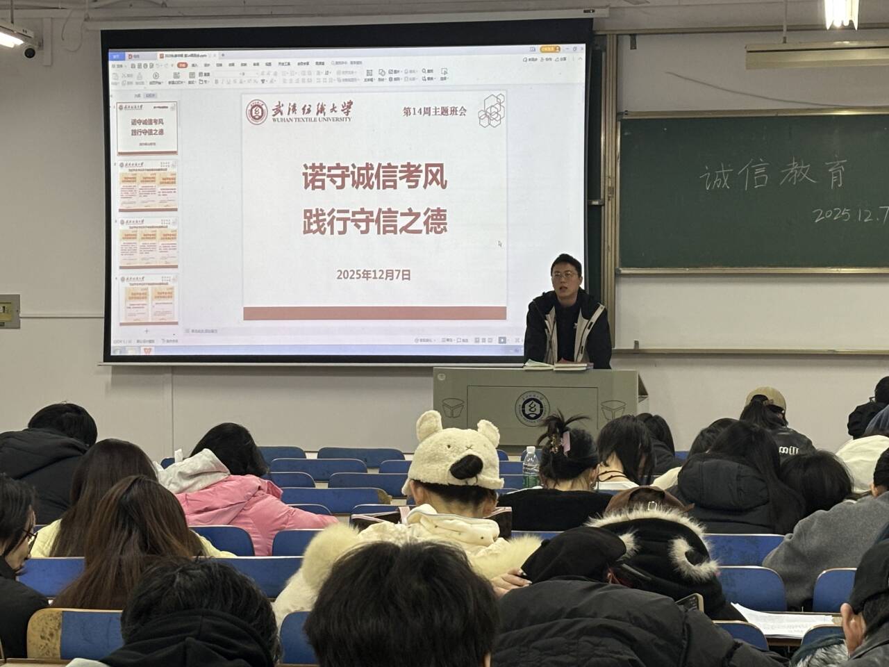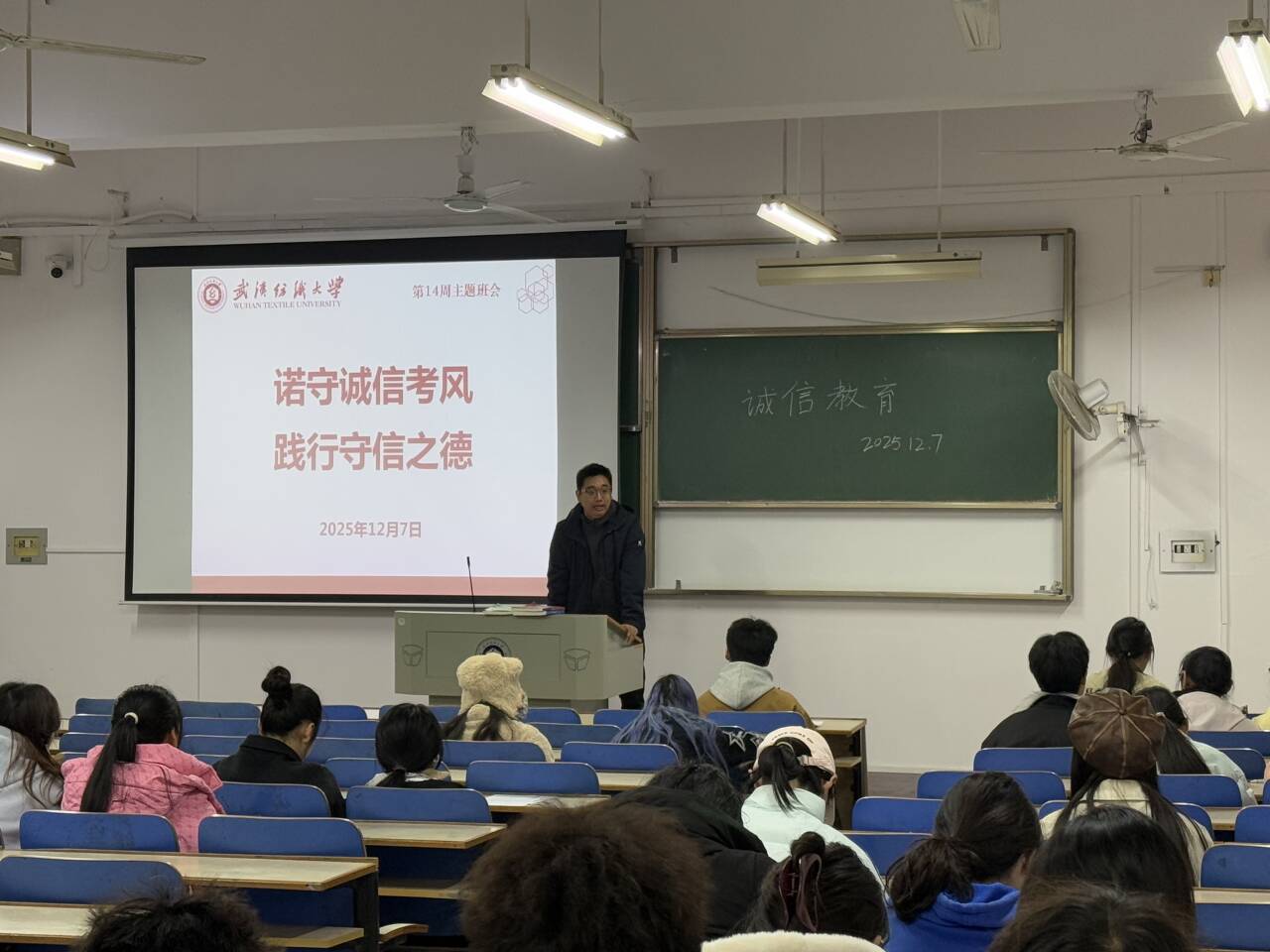 2025年12月7日晚,必赢bwin网址大全各年级于晚点名时段集中组织召开了第十四周主题班会。本次班会围绕学生日常管理、诚信应考教育、安全卫生意识提升等多方面内容展开,旨在进一步加强学风建设,筑牢校园安全防线。