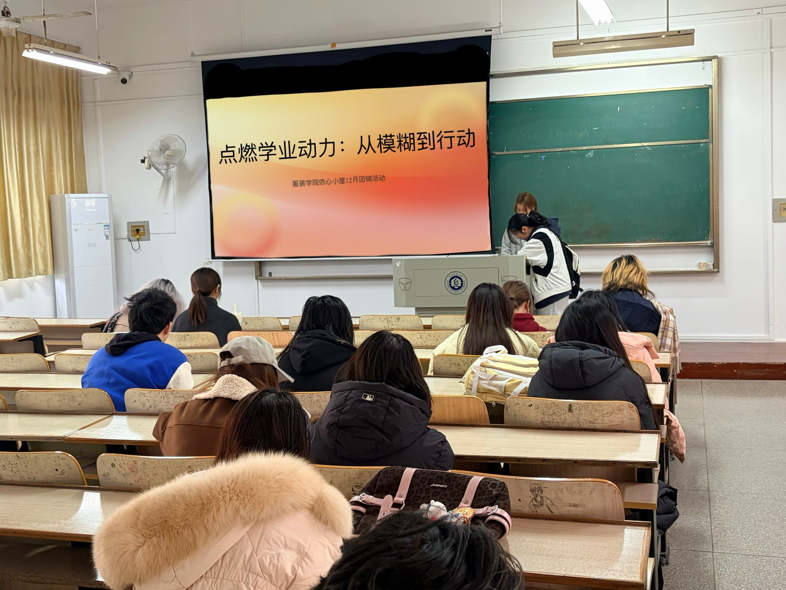 为帮助同学们突破学业动力瓶颈,将模糊目标转化为实际行动,2025 年12月8日,必赢bwin网址大全依心小屋举办以“点燃学业动力:从模糊到行动”为主题的心理团辅活动,为服装学子提供学业规划与情绪管理实用方法,助力学业健康发展。闵淼作为活动主讲人。